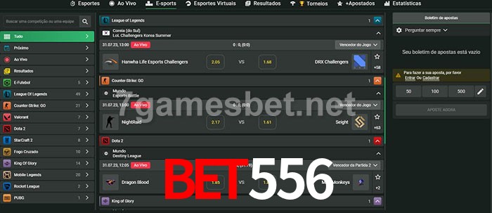 A aposta Bet556 oferece aos jogadores a experiência mais conveniente de apostas em eSports!